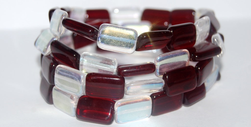 長方形のプレスガラスビーズ、赤白(RED-WHITE)、ガラス、チェコ共和国