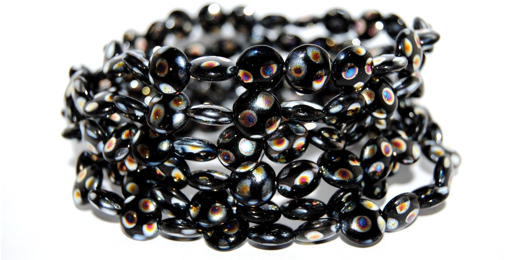 フラットラウンドコインプレスガラスビーズ、ブラック 27888 (23980-27888)、ガラス、チェコ共和国