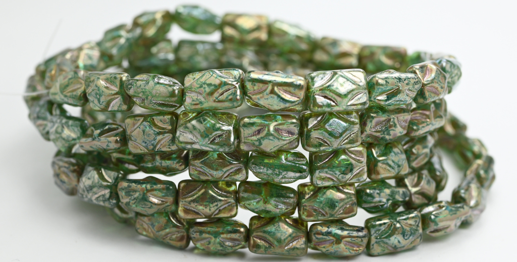 長方形のプレスガラスビーズ、透明アクアピカソ(60020-43400)、ガラス、チェコ共和国