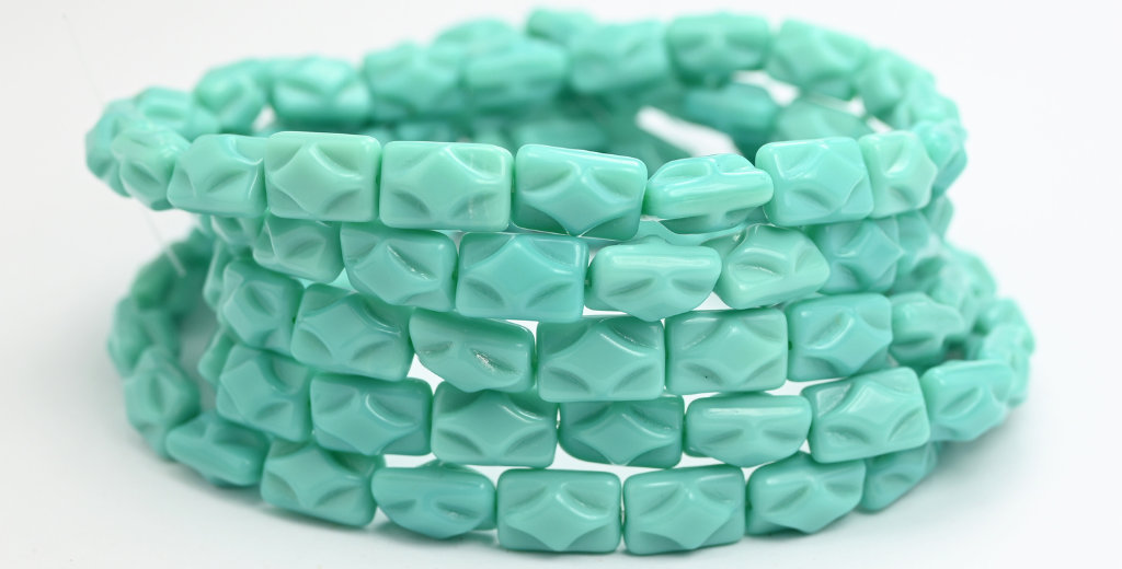 長方形のプレスガラスビーズ、ターコイズ(63120)、ガラス、チェコ共和国