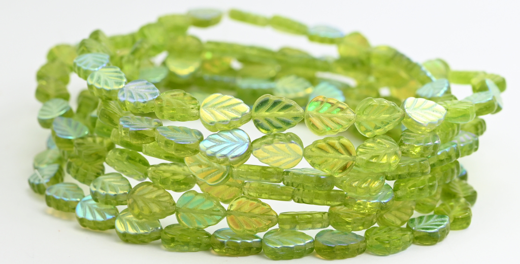ライラックリーフプレスガラスビーズ、透明グリーンAb(50200-AB)、ガラス、チェコ共和国