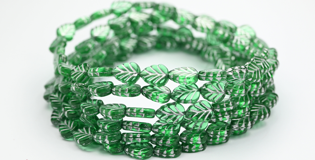 ライラックリーフプレスガラスビーズ、50600シルバーライン(50600-54201)、ガラス、チェコ共和国〜STRANDED