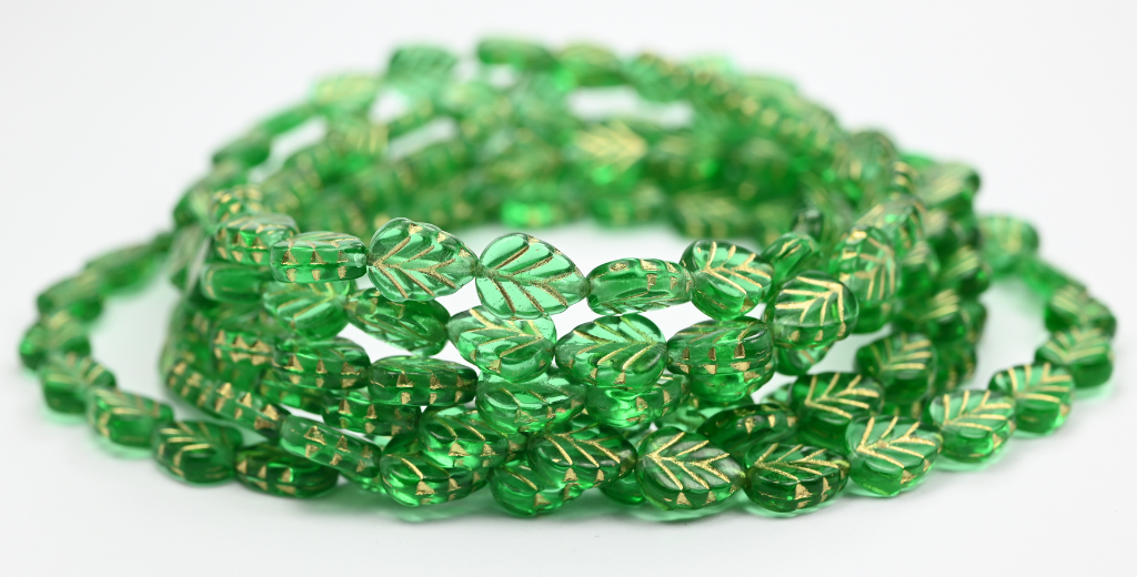 ライラックリーフプレスガラスビーズ、50600ゴールドライン(50600-54202)、ガラス、チェコ共和国~STRANDED