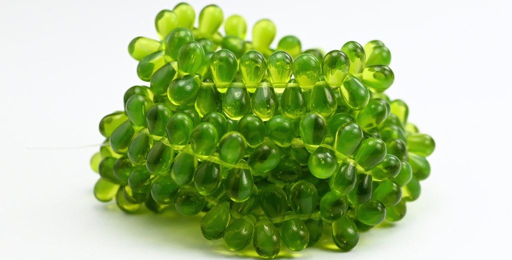 ペアドロッププレスガラスビーズ、オパールグリーン(5101050220)、ガラス、チェコ共和国