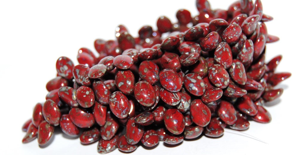 リーフタンプレスガラスビーズ、レッド 43400 (93190 43400)、ガラス、チェコ共和国