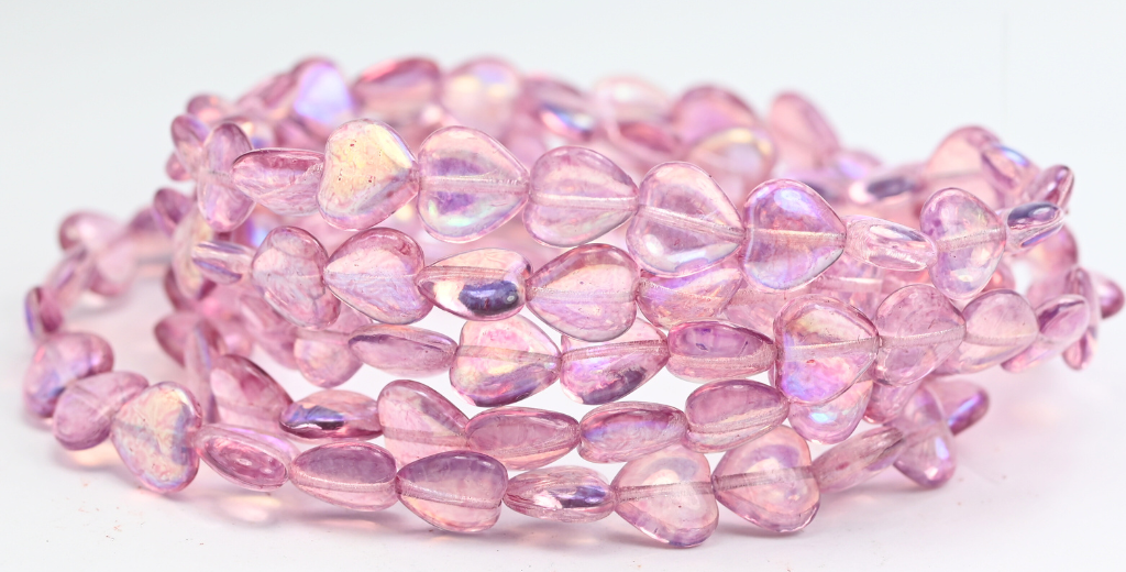 ハート型プレスガラスビーズ、クリスタルライトフクシアピンクAB(00030-34306-AB)、ガラス、チェコ共和国