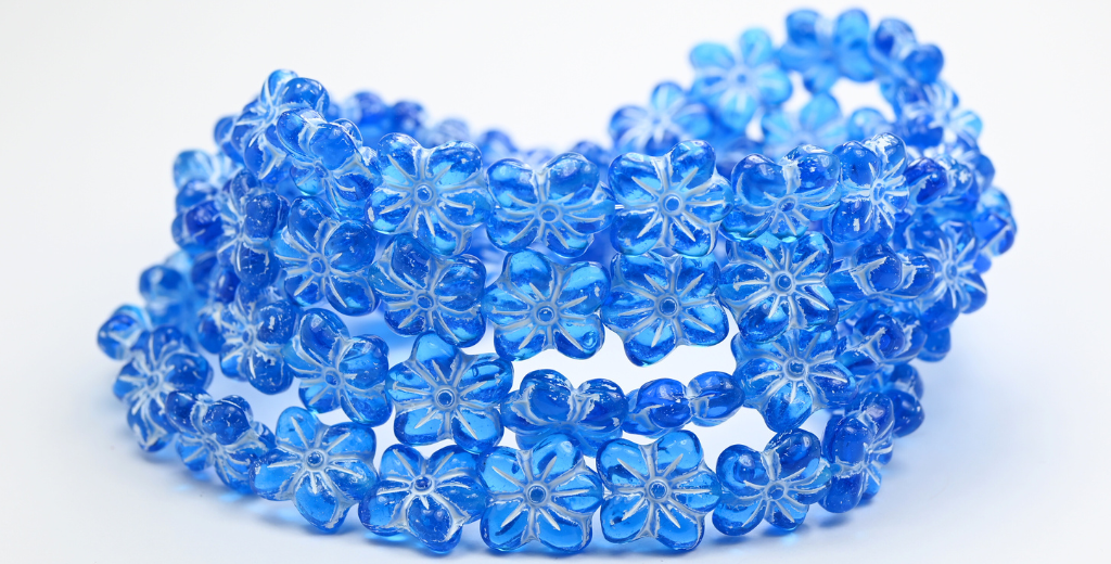 フラワープレスガラスビーズ、透明アクアホワイトライン入り(60040-46401)、ガラス、チェコ共和国~STRANDED