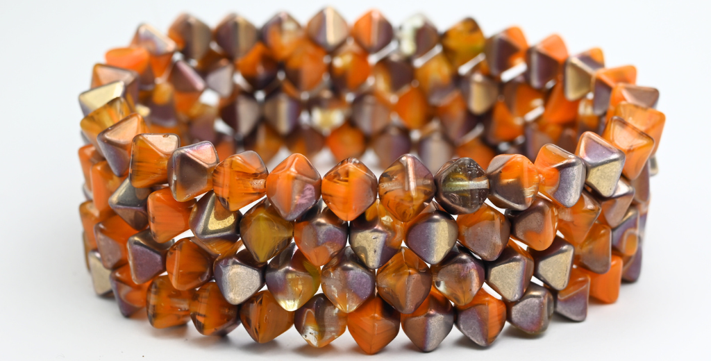 平らな双円錐形のプレスビーズ、オレンジローズゴールドカプリ(81240-27101)、ガラス、チェコ共和国
