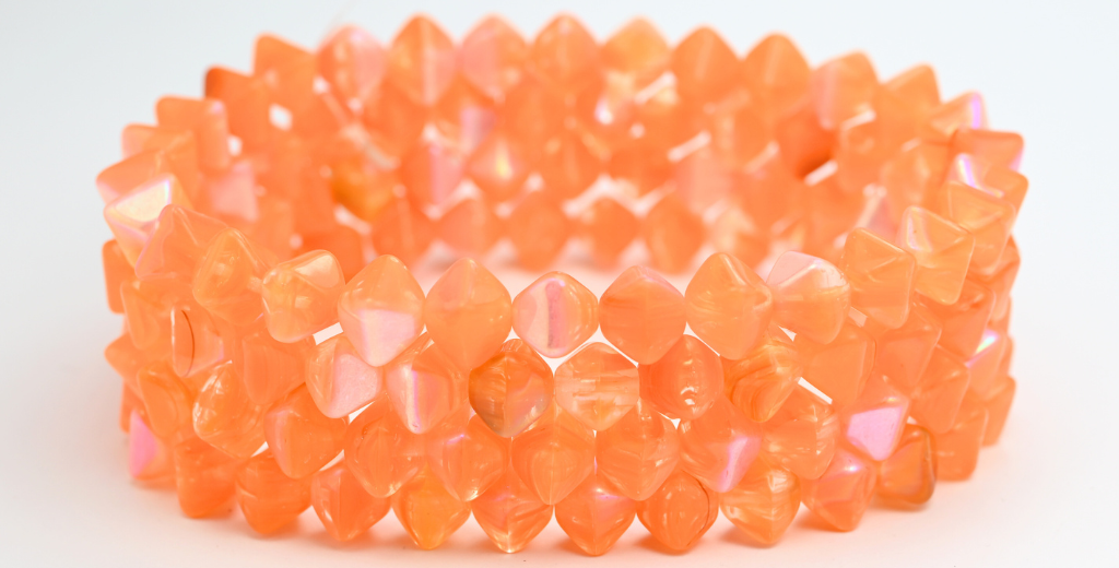 平らな双円錐形のプレスビーズ、オレンジAB(81240-AB)、ガラス、チェコ共和国