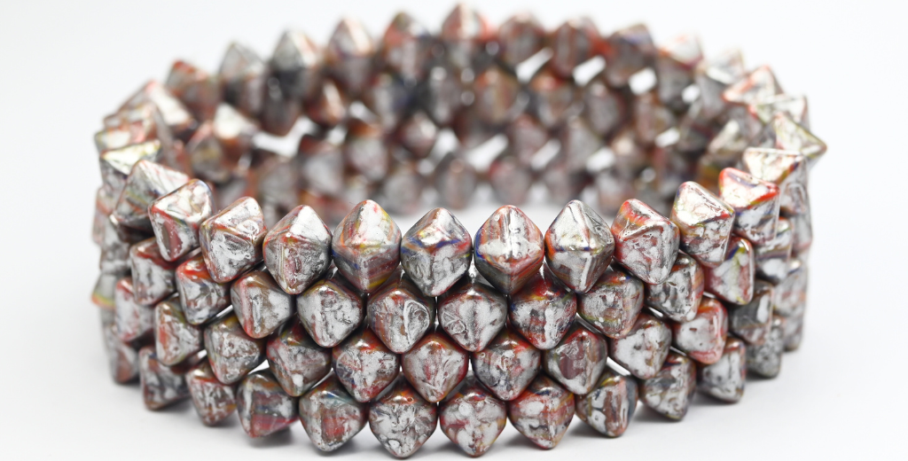 平らな双円錐形のプレスビーズ、カラー2 シルバースプラッシュ(COLOR-2-86700)、ガラス、チェコ共和国 ~ STRANDED