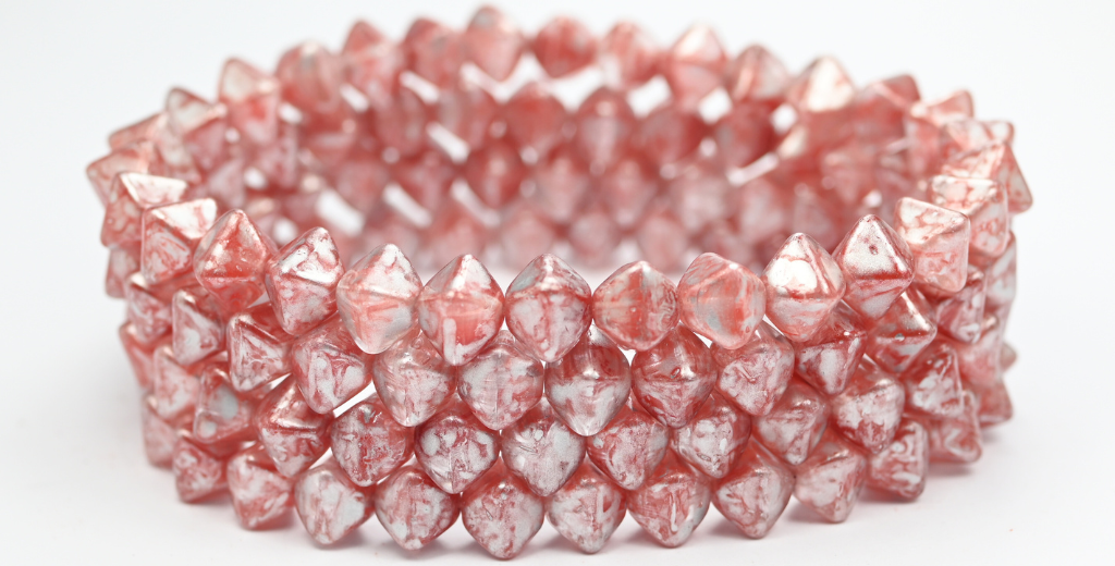平らな双円錐形のプレスビーズ、ミックスカラーレッドシルバースプラッシュ(MIX-RED-86700)、ガラス、チェコ共和国〜STRANDED