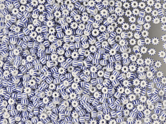 プレシオサ オルネラ シードビーズ 1kg 丸穴 ルース チョークホワイトにブルーストライプ (03331) ガラス チェコ共和国 アウトレット