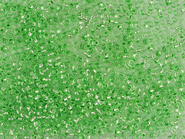 1 kg プレシオサ オルネラ シードビーズ コーティング 丸穴 ルース グリーン染色クリスタル シルバーライン (18256) ガラス チェコ共和国 アウトレット
