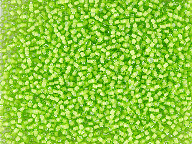 1 kg プレシオサ オルネラ シードビーズ コーティング済み、丸穴、ばら売り、透明ライトグリーン、カラーライニング チョークホワイト; プレシオサ ホワイトライニング (55226)、ガラス、チェコ共和国、アウトレット