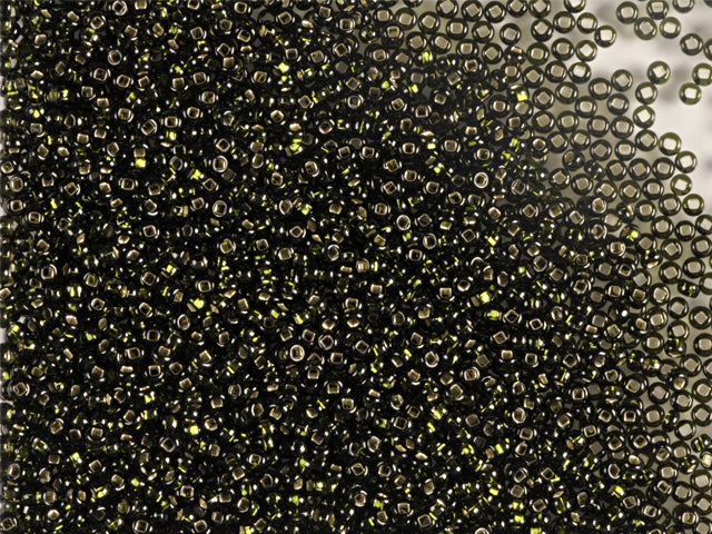 プレシオサ オルネラ シードビーズ コーティング 丸穴 ルース 透明 ダークグリーン シルバーライン (57290) ガラス 1kg チェコ共和国 アウトレット