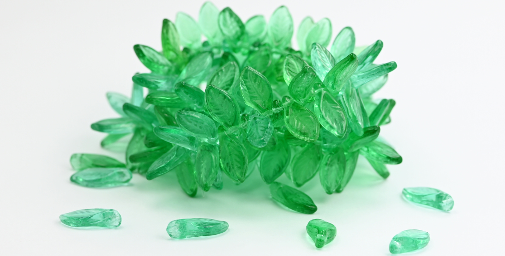 葉っぱのプレスガラスビーズ、透明グリーン(50610)、ガラス、チェコ共和国