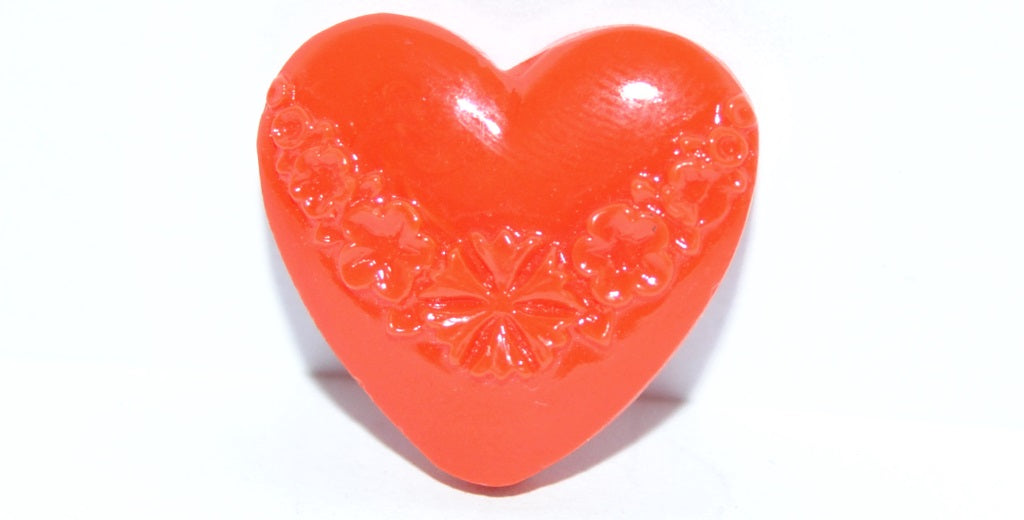 ハートと花のダブレットプレスガラスビーズ、93150(93150)、ガラス、チェコ共和国〜STRANDED
