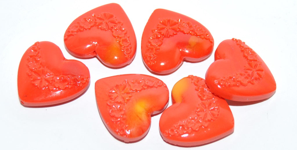 ハートと花のダブレットプレスガラスビーズ、93150 X (93150-X)、ガラス、チェコ共和国
