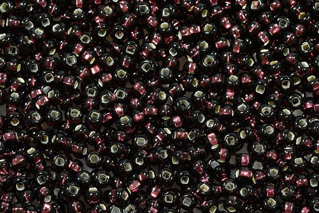 プレシオサ・オルネラ・ロカイユ ラウンドシードビーズ、ダークアメジスト、シルバーライン(27080)、ガラス、チェコ共和国