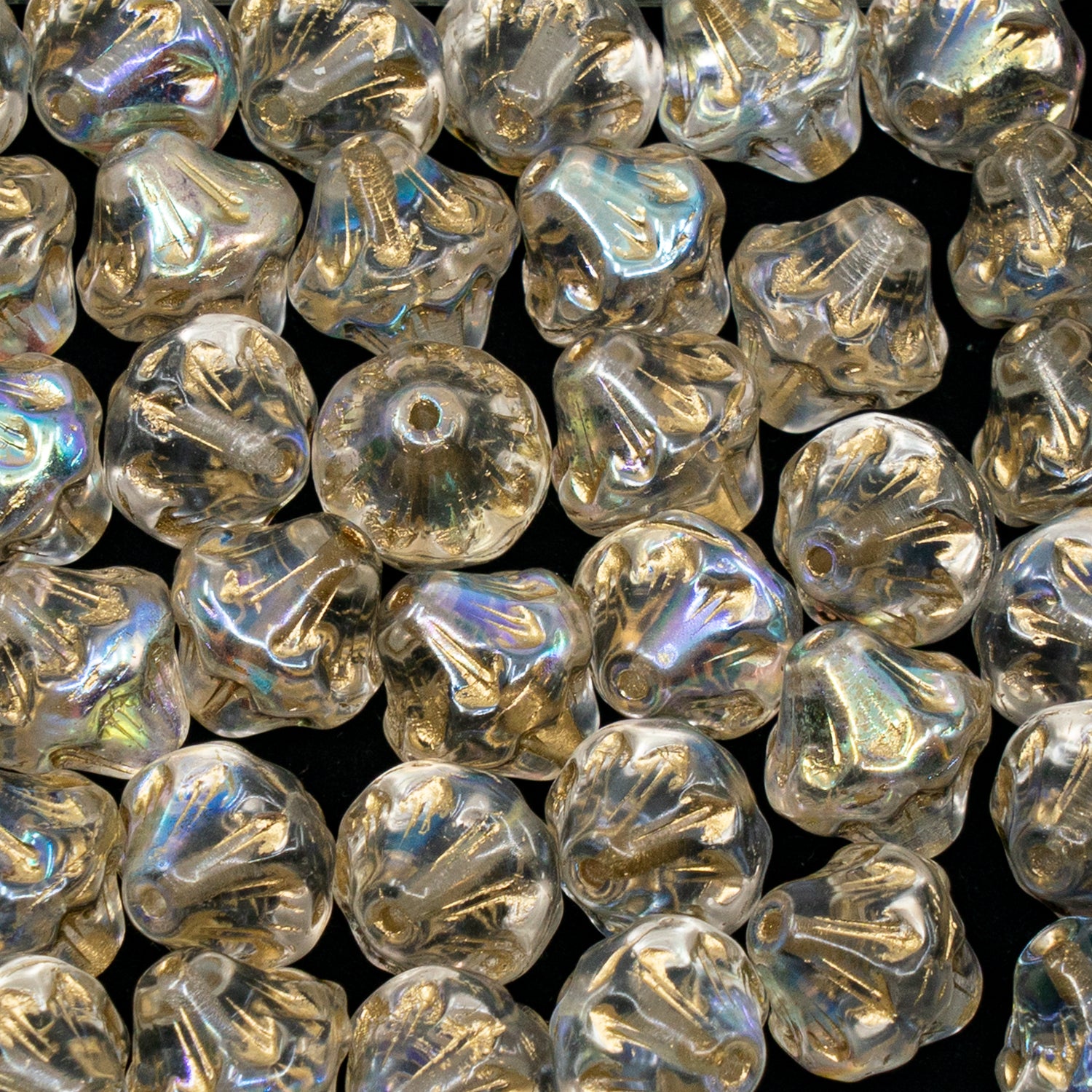 アウトレット 10グラム ランタンプレスガラスビーズ、11 x 11 mm、クリスタルゴールドラインAb(00030-54302-AB)、ガラス、チェコ共和国