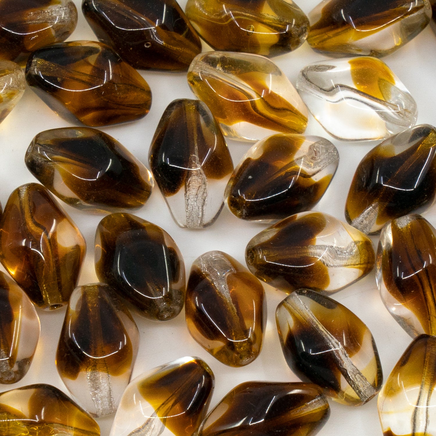 OUTLET 10 grams Bicone Beads, 15 x 10 mm, Mixed Crystal Brown Cola (17008), Glass, Czech Republic