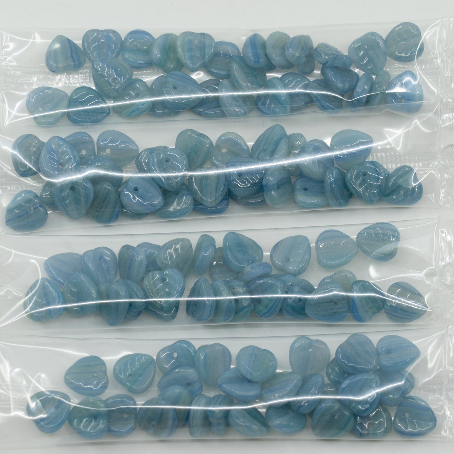 アウトレット 10グラム リーフビーズ、ブルーストライプ(ブルーストライプ)、ガラス、チェコ共和国