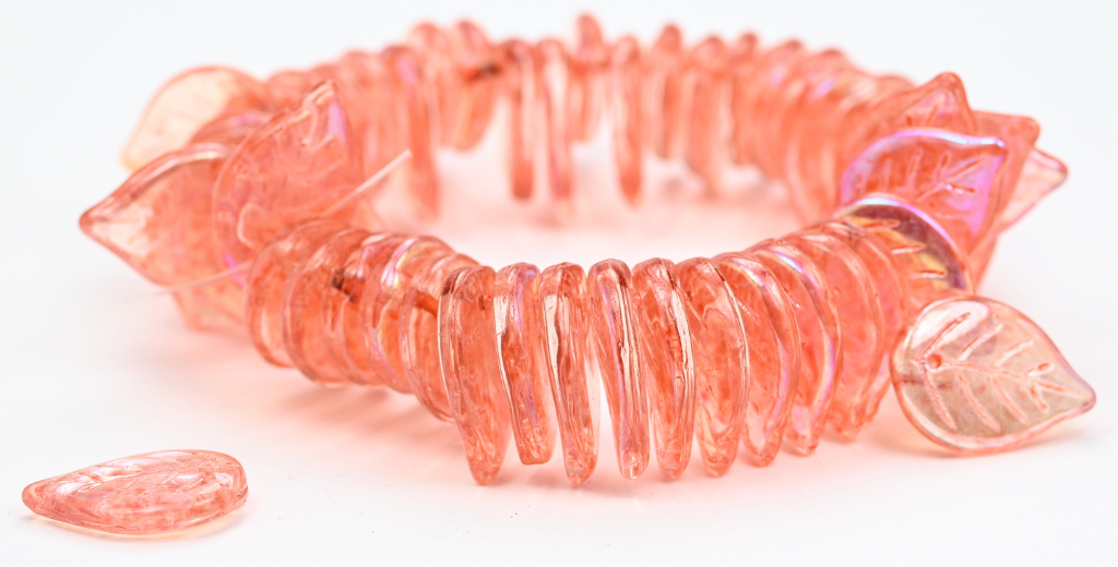 アウトレット 10グラム アップルリーフビーズ、18 x 13 mm、クリスタルライトピンクピーチAb(00030-34305-AB)、ガラス、チェコ共和国