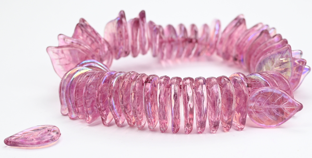 アウトレット 10グラム アップルリーフビーズ、18 x 13 mm、クリスタルライトフクシアピンクAb(00030-34306-AB)、ガラス、チェコ共和国