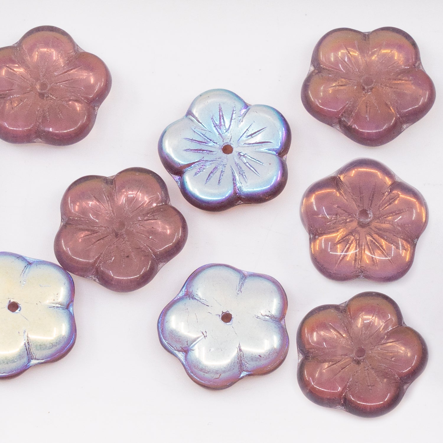 OUTLET 10 grams Cherry Flower Beads, 14 x 14 mm, Transparent Light Amethyst Ab (20040-28701), Glass, Czech Republic