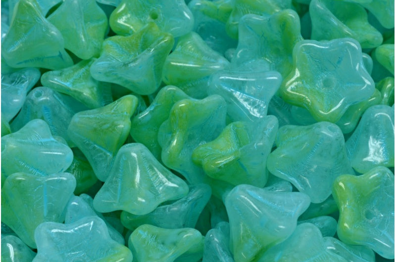 アウトレット 10グラム ペチュニアフラワービーズ、8 x 13 mm、56027 ターコイズスポット (56027-33309)、ガラス、チェコ共和国
