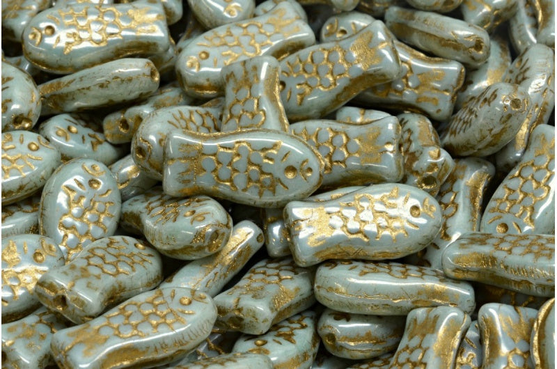 アウトレット 10グラム ミディアムフィッシュビーズ、14 x 7 mm、ホワイトラスターグリーンフルコーティングゴールドライニング(02010-14457-54302)、ガラス、チェコ共和国