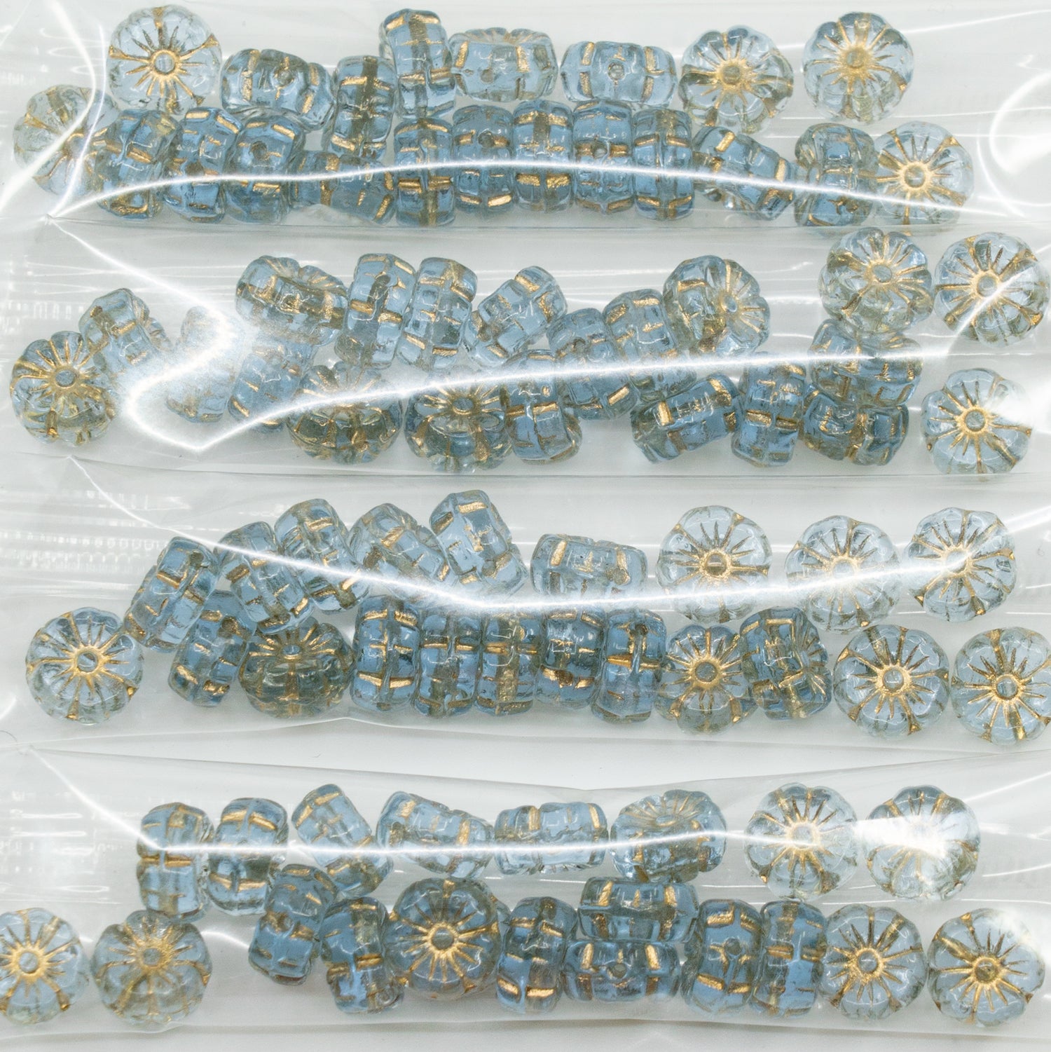 アウトレット 10g ハワイアンフラワービーズ、8 x 8 mm、ライトブルーゴールドライン、ガラス、チェコ
