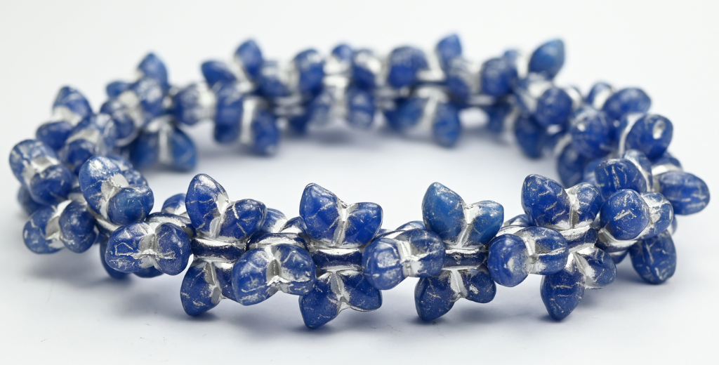 アウトレット 10グラム シンプルバタフライプレスガラスビーズ、20 x 12 mm、ブルーシルバーライン(62010-54201)、ガラス、チェコ共和国