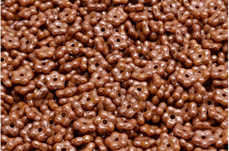 アウトレット 10グラム 忘れな草ビーズ、5 x 5 mm、不透明ブラウンコッパースプラッシュ(13610-86750)、ガラス、チェコ共和国