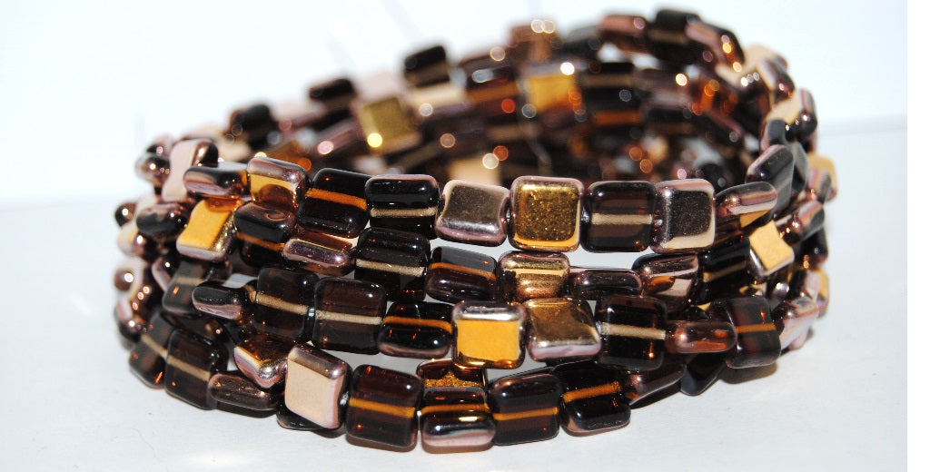 アウトレット 10グラム フラットスクエアプレスガラスビーズ、8 x 8 mm、ミックスカラートパーズローズゴールドカプリ(mix-topaz-27101)、ガラス、チェコ共和国