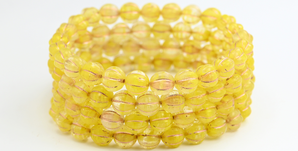 アウトレット 10グラム メロンビーズ、8 x 8 mm、86036S 銅線入り (86036S-54200)、ガラス、チェコ共和国
