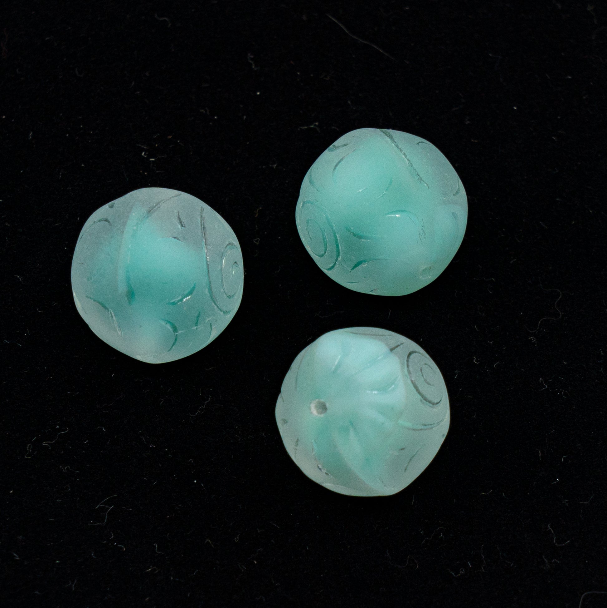 アウトレット 10グラム ラウンドビーズ(飾り付き)、16 x 16 mm、ティールマット(56218-84100)、ガラス、チェコ共和国