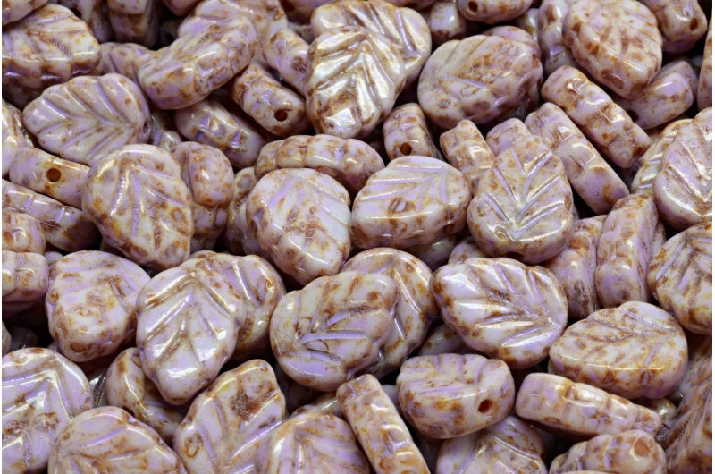 アウトレット 10グラム ミントリーフビーズ、10 x 8 mm、ホワイトトラバーチンコールドパープルスポット(02010-86800-33305)、ガラス、チェコ共和国