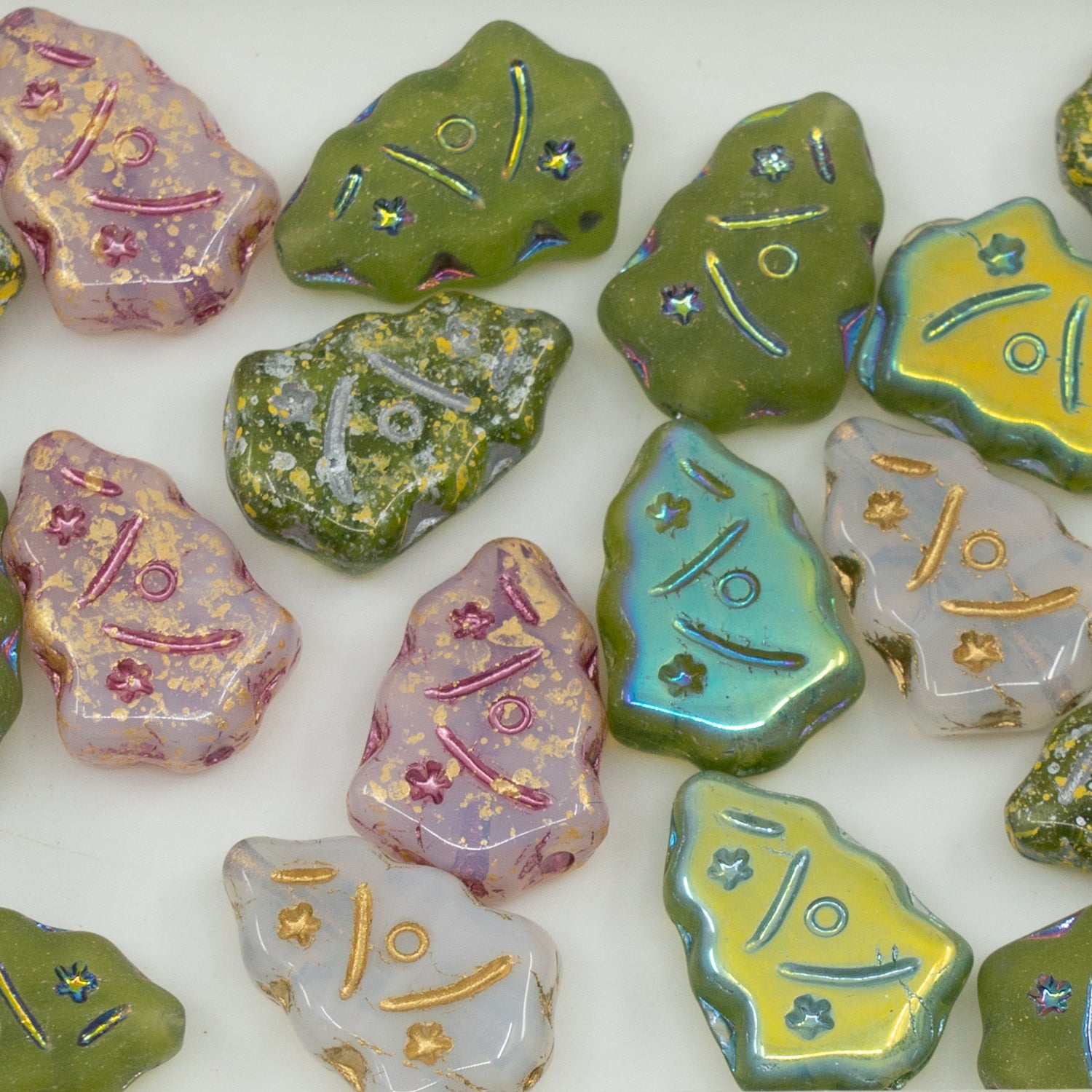アウトレット 10グラム クリスマスツリービーズ、17 x 11 mm、ミックスカラー(ミックス)、ガラス、チェコ共和国