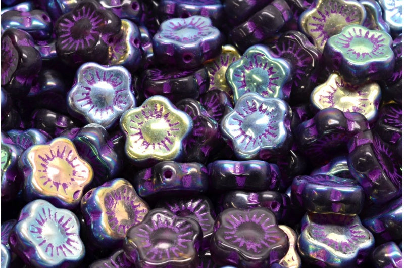 アウトレット 10グラム サンセットフラワービーズ、10 x 10 mm、R0239 Ab 54326 (R0239-28701-54326)、ガラス、チェコ共和国
