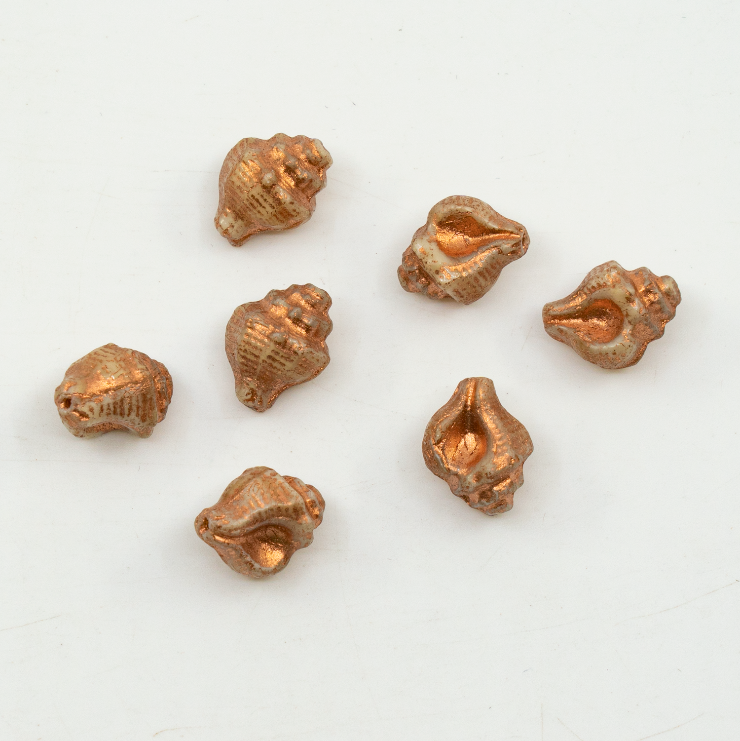 アウトレット 10グラム ミュレックスシェルビーズ、15 x 12 mm、不透明ベージュ銅線入り(13010-54200)、ガラス、チェコ共和国