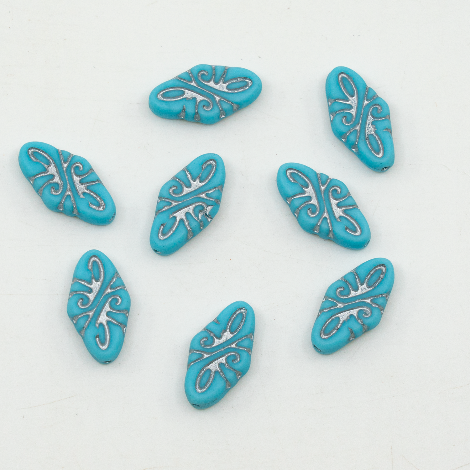 アウトレット 10グラム アラベスクビーズ、ターコイズマットシルバーライン(63120-84100-54201)、ガラス、チェコ共和国
