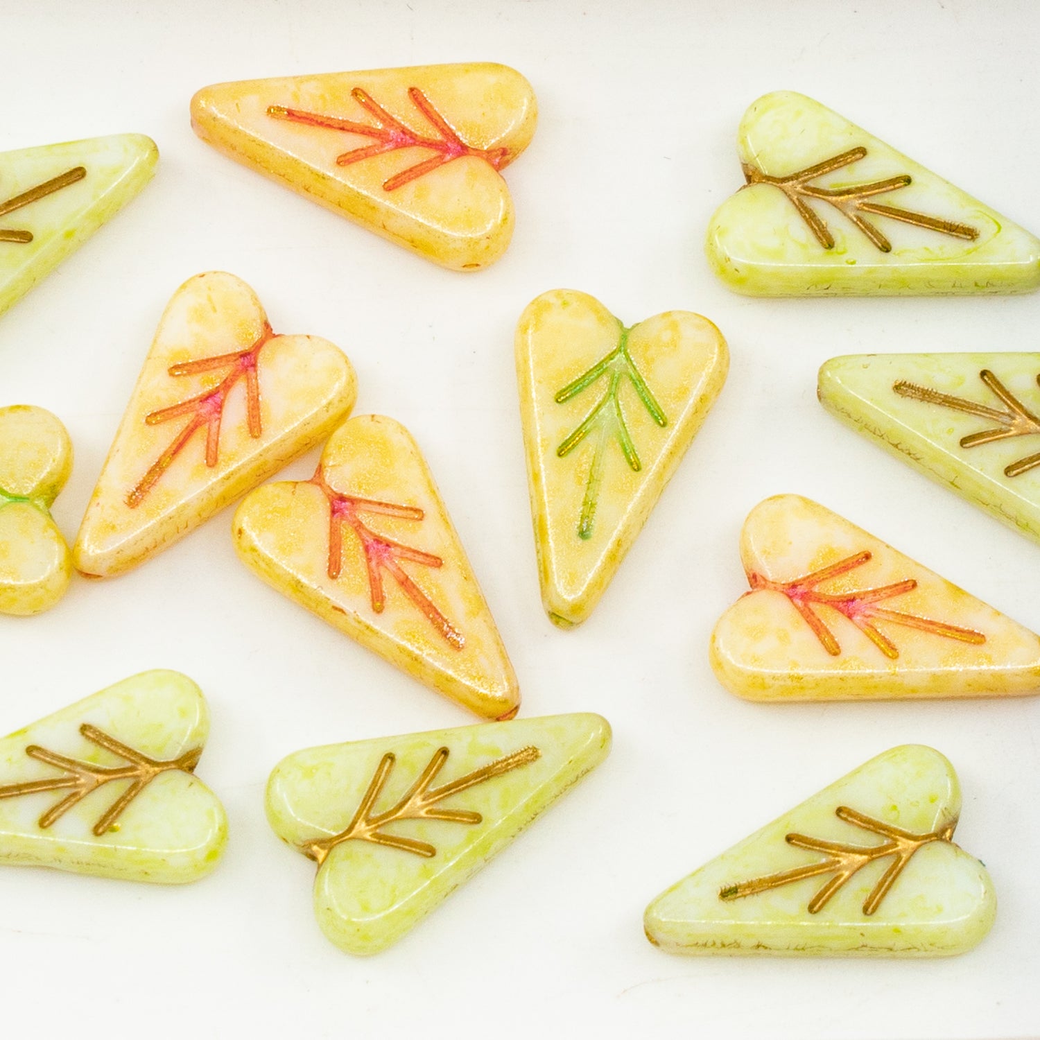アウトレット 10グラム ハートリーフビーズ、16 x 11 mm、ミックスカラーベージュ(ミックスベージュ)、ガラス、チェコ共和国