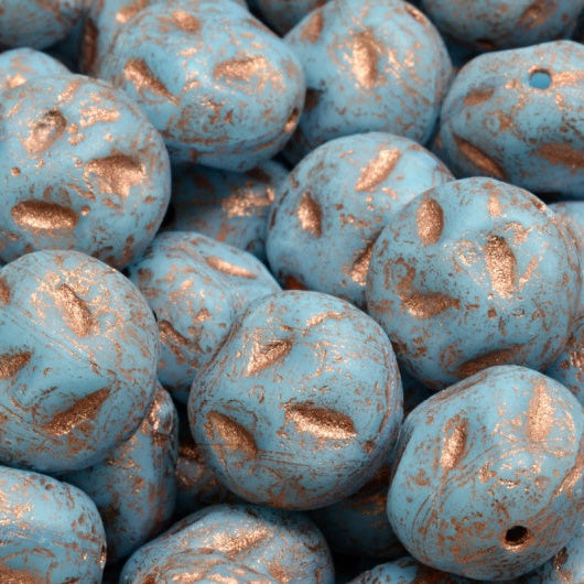 アウトレット 10グラム モノンストーンビーズ、13 x 11 mm、トルコ石エッチング銅ライニング(64000-etch-54318)、ガラス、チェコ共和国