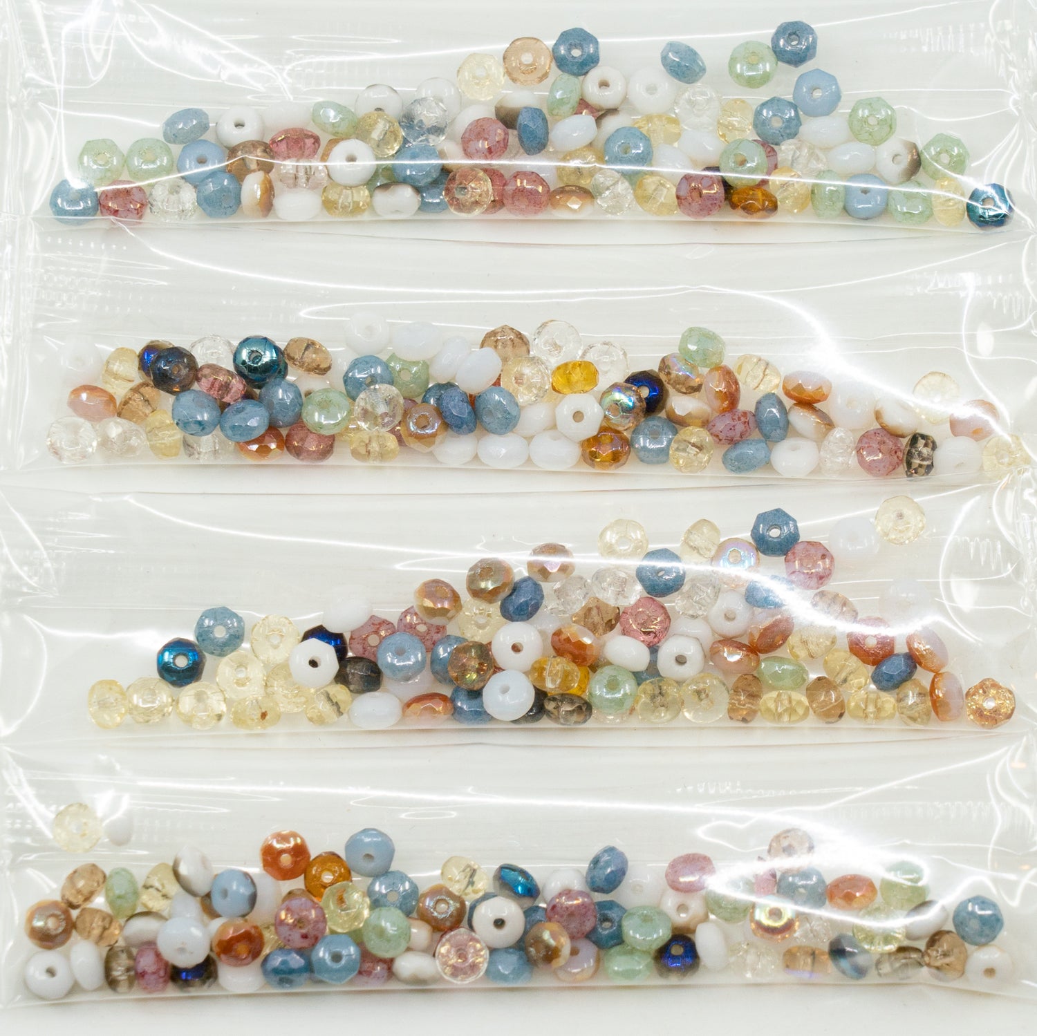 アウトレット 5グラム ファセットロンデル ファイアポリッシュビーズ、2 x 3 mm、ミックスカラー(ミックス)、ガラス、チェコ共和国