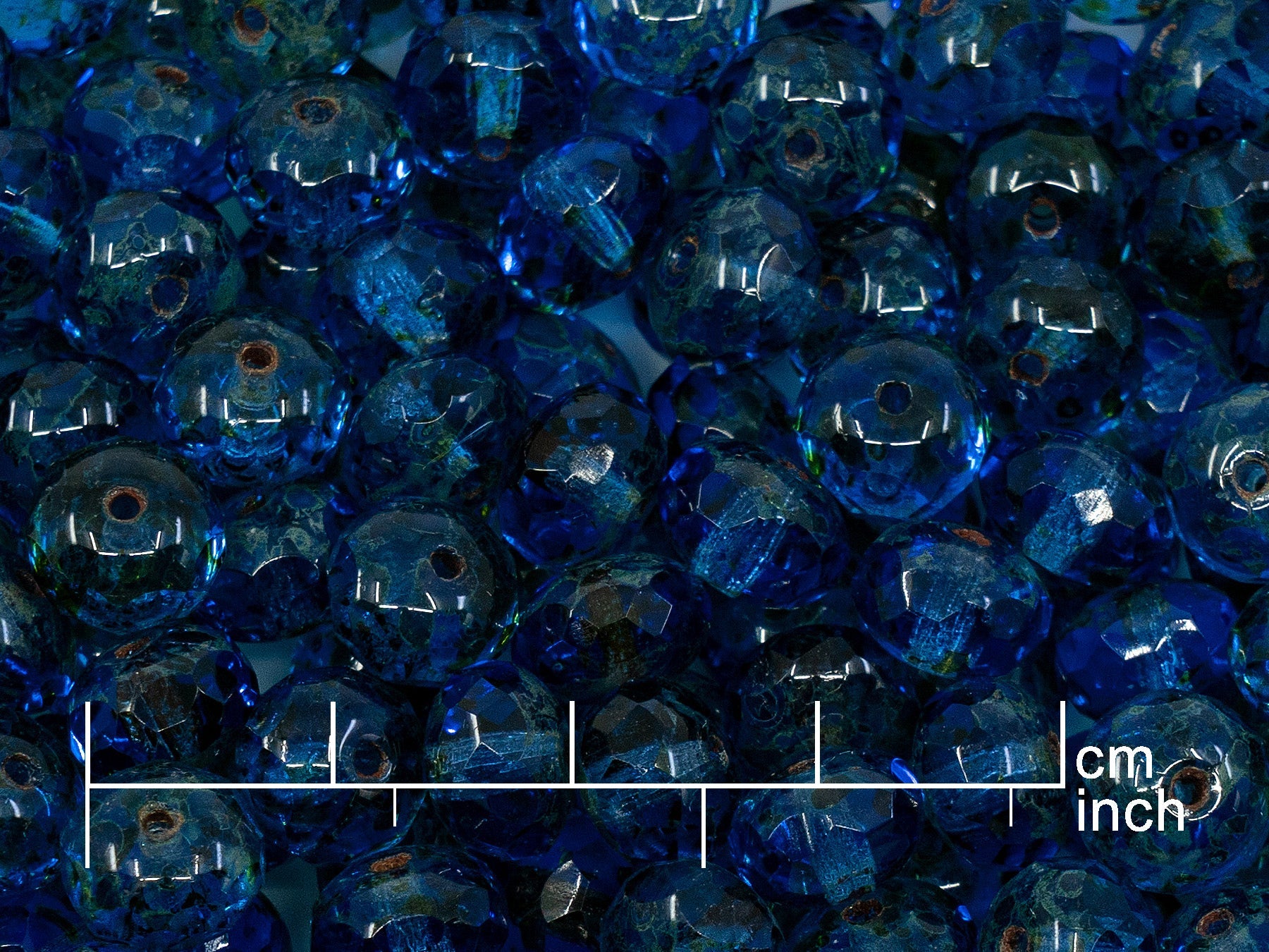 アウトレット 10グラム ファセットロンデル ファイアポリッシュビーズ、7 x 9 mm、コバルトトラバーチン(30050-86800)、ガラス、チェコ共和国