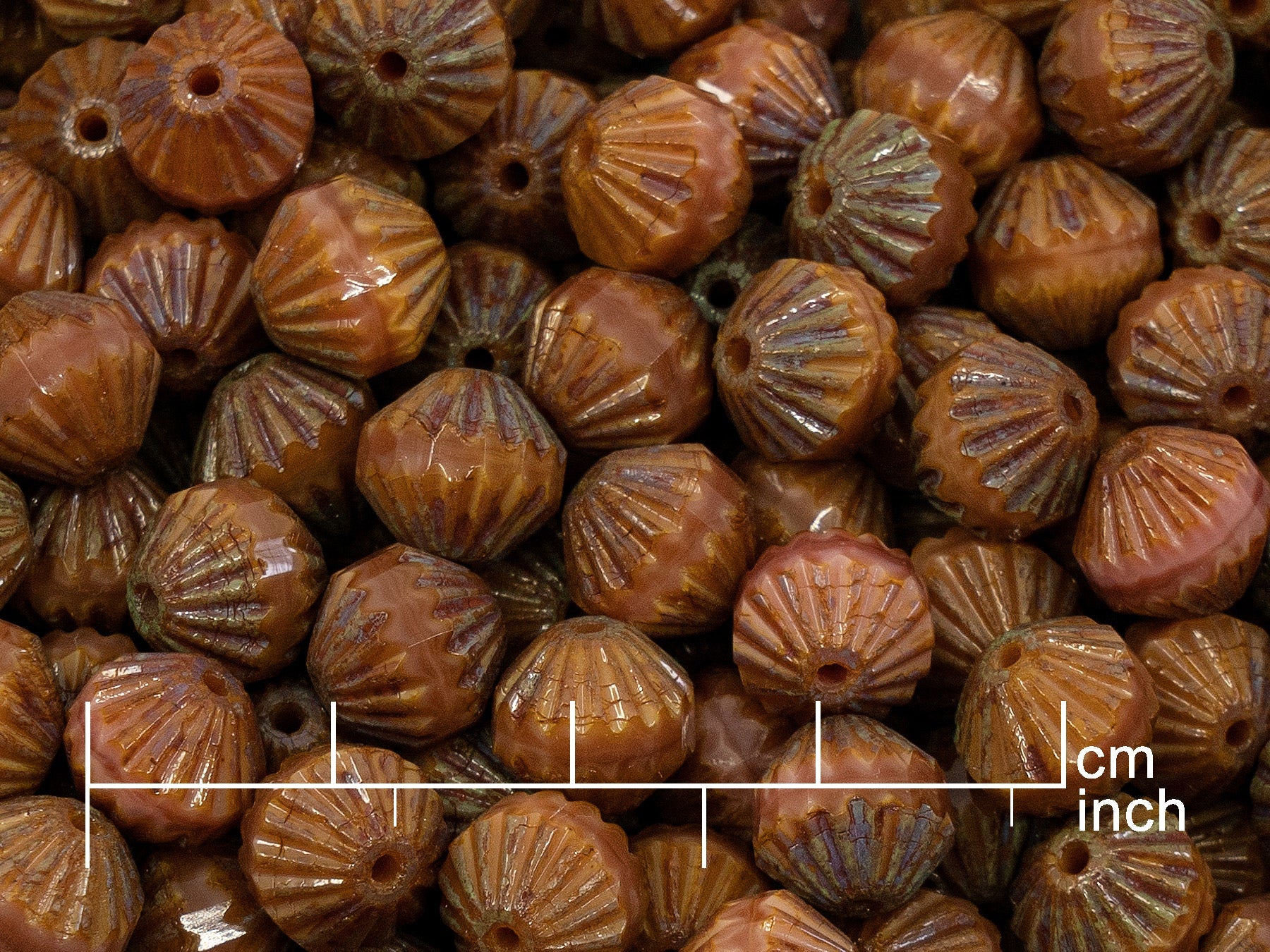 アウトレット 10グラム ファセット加工 ファイアポリッシュ ランタン カテドラル ビーズ、9 x 9 mm、不透明ピンク トラバーチン (74020-86800)、ガラス、チェコ共和国