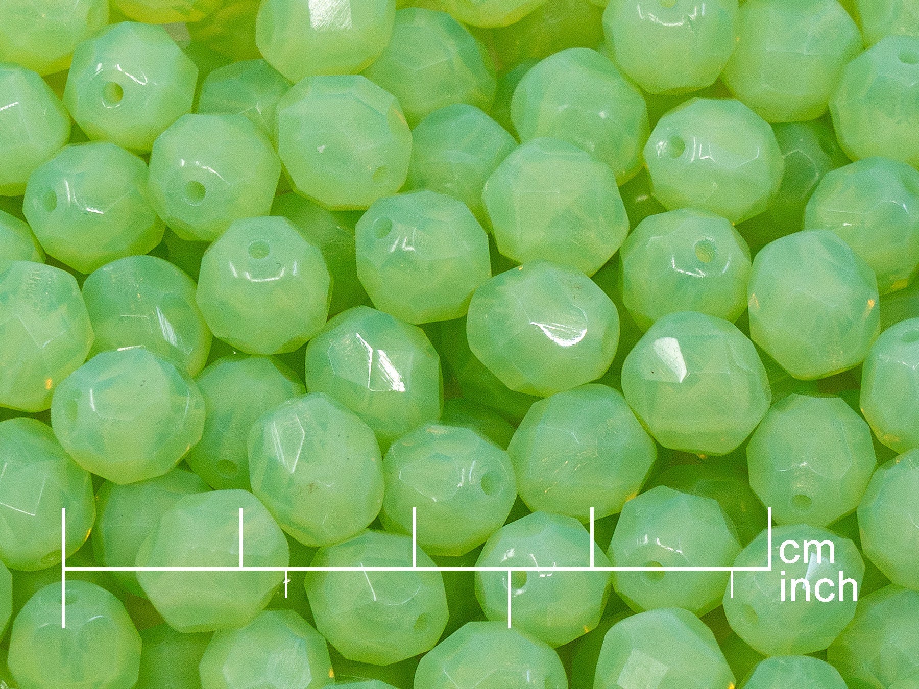 アウトレット 10グラム ファセットラウンドファイアポリッシュビーズ、8 x 8 mm、オパールペールグリーン(51200)、ガラス、チェコ共和国