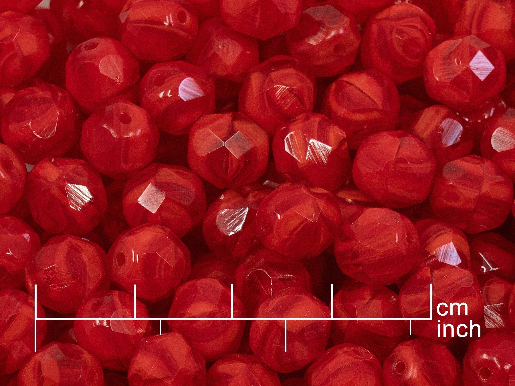 アウトレット 10グラム ファセットラウンドファイアポリッシュビーズ、8 x 8 mm、オパールレッド(91240)、ガラス、チェコ共和国