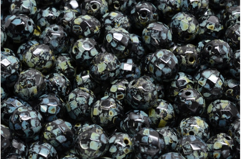 アウトレット 10グラム ファセットラウンドファイアポリッシュビーズ、8 x 8 mm、ブラックトラバーチン(23980-86800)、ガラス、チェコ共和国